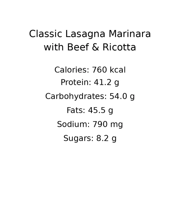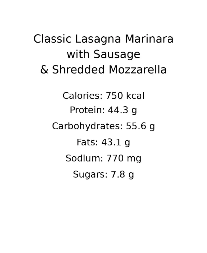 Layers of tender pasta, rich marinara meat sauce, creamy ricotta, and melted mozzarella create this timeless Italian favorite. Baked to perfection, this hearty dish delivers warmth, comfort, and bold Italian flavors in every bite.