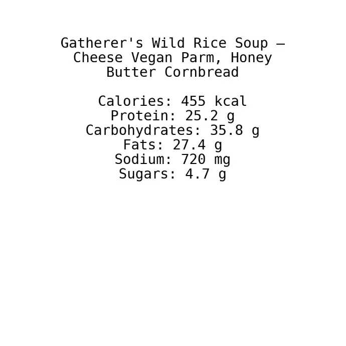 A rustic, forager-inspired soup crafted with hearty wild rice, sweet potatoes, with fresh mushrooms and garden vegetables, slowly simmered in a creamy coconut-infused broth with a touch of Old Bay for depth. Customize it with your choice of freshly shaved Parmesan, vegan Parmesan, or no cheese at all.