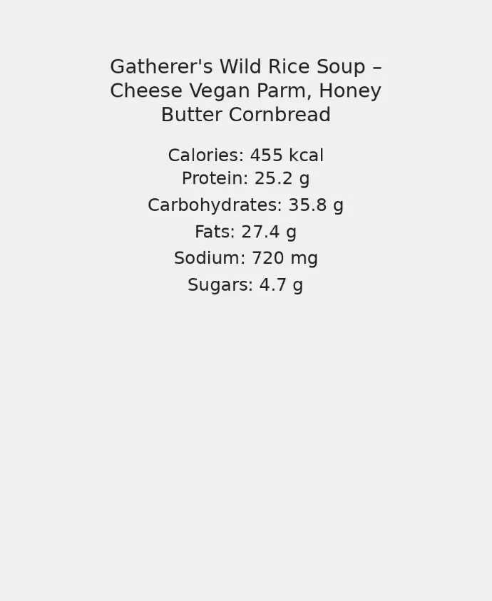 A rustic, forager-inspired soup crafted with hearty wild rice, sweet potatoes, with fresh mushrooms and garden vegetables, slowly simmered in a creamy coconut-infused broth with a touch of Old Bay for depth. Customize it with your choice of freshly shaved Parmesan, vegan Parmesan, or no cheese at all.